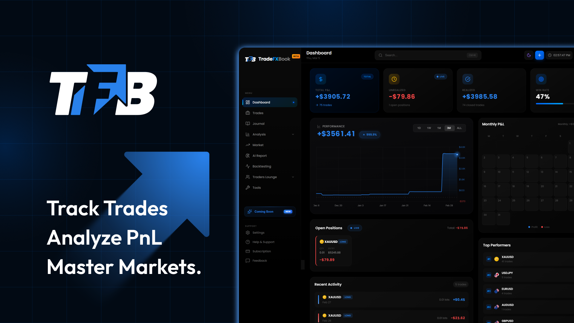 Sync your trades, journal every setup, backtest ideas, and let AI do the analysis.